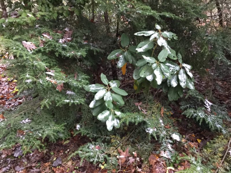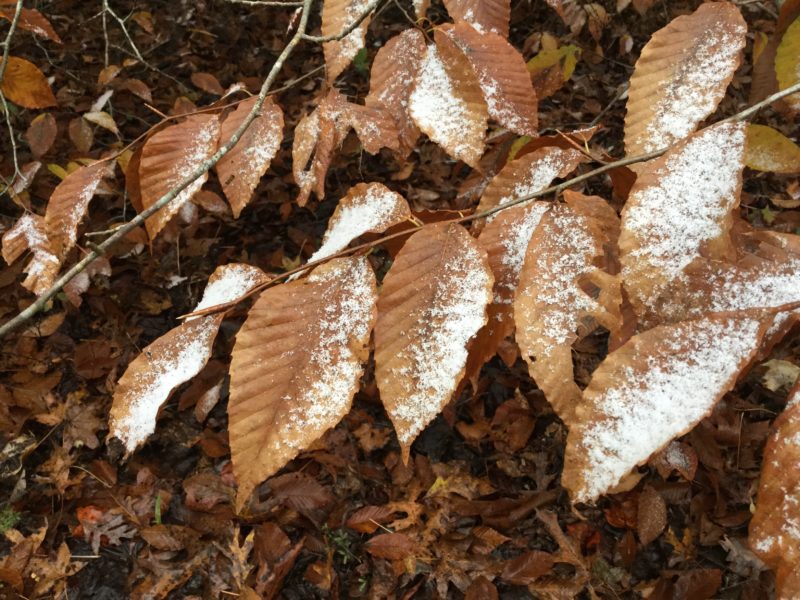 A light layer of snow and early morning spider webs make for natural beauty. The leaves are still falling and the color is waning, and winter is almost upon us.